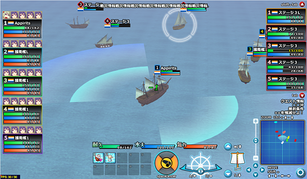 海戦はフル3Dアクションバトルで、プレイヤー自ら操作可能。 砲撃を命中させる艦船部位によってダメージが変動したり、強力で多彩な航海士スキルを発動できるなど、大逆転ありの白熱の海戦を実現します。 更に、最大5人のプレイヤーと同時協力プレイが可能。皆で協力して敵艦を撃沈しよう!