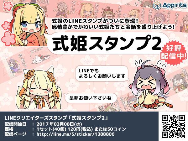 LINE株式会社(本社:東京都渋谷区、代表取締役社長:森川亮)が運営する「LINE STORE」の「クリエイターズスタンプ」にて、2017年3月8日(水)より「式姫スタンプ2」の配信を開始いたしました。「式姫スタンプ2」は、「式姫」を使用したLINEクリエイターズスタンプの第二弾となっており、今回は式姫の人気がユーザーの投票によって選ばれる「式姫人気投票2016」で人気が上位だったキャラクターが多数収録されております。