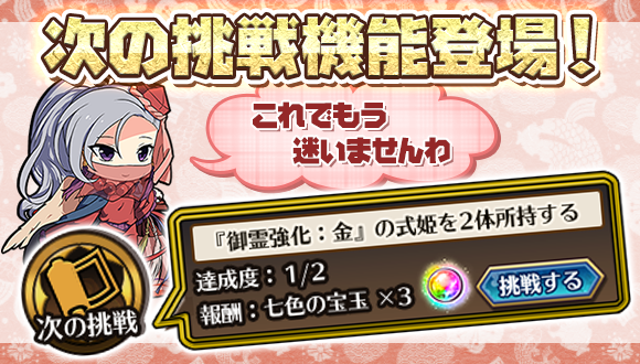 『次の挑戦』を順番にクリアしていけば、あっという間に一流陰陽師の仲間入り!