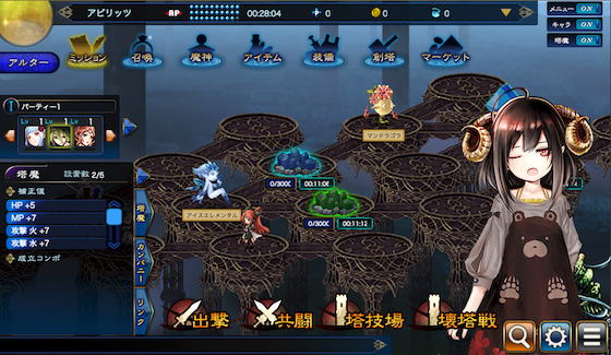 本拠地画面では魔王と呼ばれる特別な魔神たちがサポート