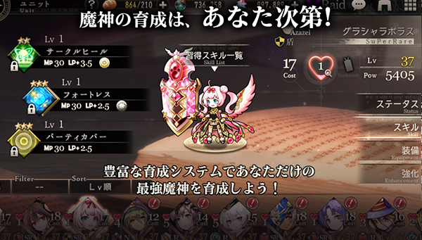 奥深い育成システムで、あなただけの魔神にカスタマイズできます。
