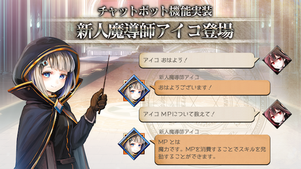 株式会社アピリッツ(本社:東京都渋谷区、代表取締役社長:和田順児、以下アピリッツ)は、現在サービス中のスマートフォンアプリ・ブラウザゲーム『ゴエティアクロス』ワールドチャットにて、AIによるコミュニケーション機能『新人魔導師アイコ』(以下アイコ)を実装いたします。