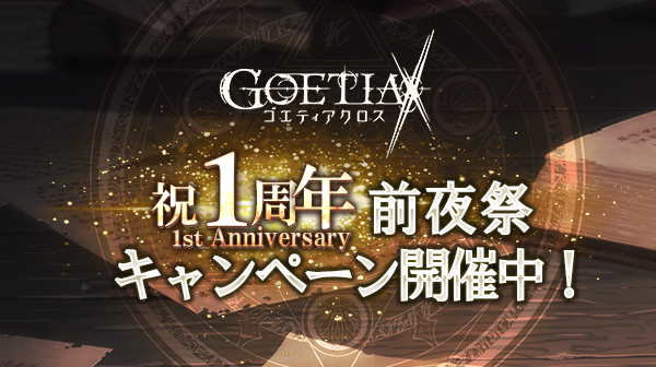 「1周年前夜祭キャンペーン」とはゴエティアクロス1周年に先駆けて9月12日(木)より行う
