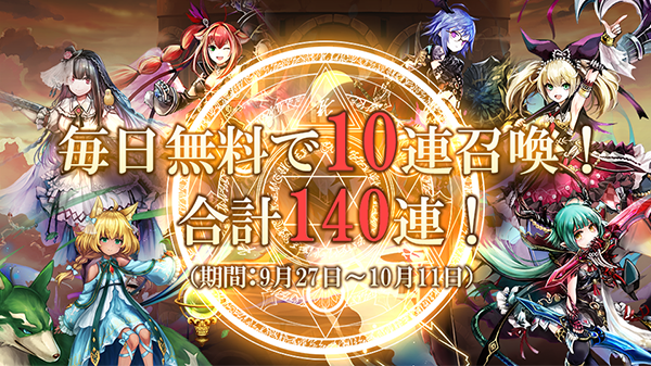 9月27日から合計140連無料のお得なキャンペーンとなっております。