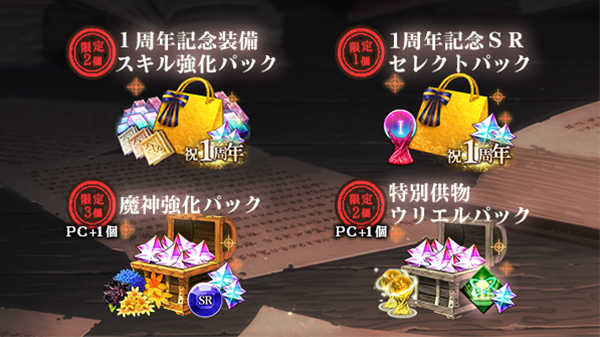※「1周年記念SRセレクトの供物」は一部の魔神を除く、SR魔神の中からお好きな1体を召喚する