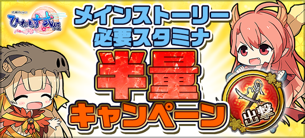 期間中、メインストーリーのスタミナ消費量が通常の1/2になります。
