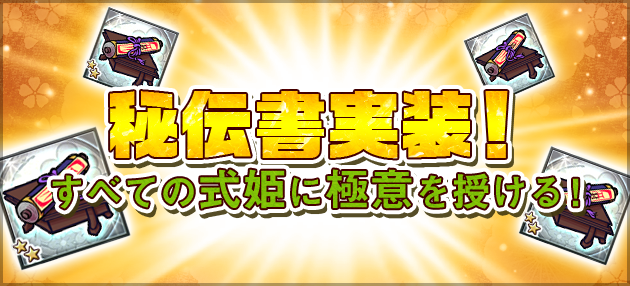 スキル付きの人形"秘伝書"を実装!この人形を装備した式姫は特別なスキルを使うことが出来ます。