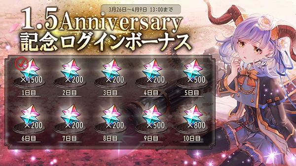 1.5周年を記念して、最大でジェム4500個が手に入るログインボーナスを開催いたします!