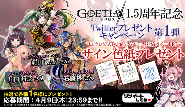 期間中にゴエティアクロス公式アカウント(@goetiax_staff)をフォローし、対象のツイートをリツイートした方から抽選で