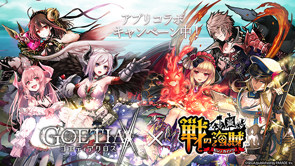 株式会社アピリッツ(本社:東京都渋谷区、代表取締役社長:和田順児、以下アピリッツ)は、現在サービス中のスマートフォンアプリ・ブラウザゲーム『ゴエティアクロス』にて、マイネットグループの株式会社マイネットゲームス(本社:東京都港区、代表取締役社長:松本啓志)が運営する海洋冒険バトル『戦の海賊』とのコラボキャンペーンの開催をお知らせいたします。