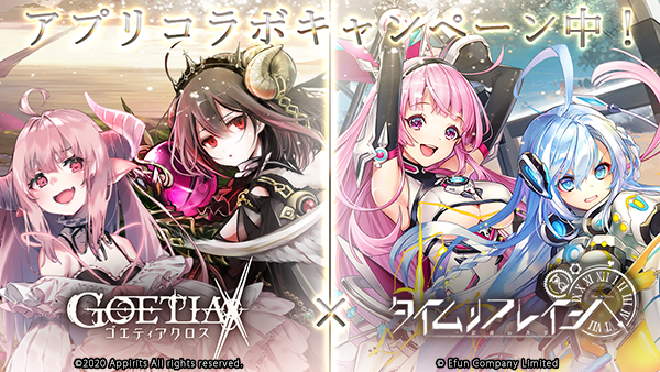 株式会社アピリッツ(本社:東京都渋谷区、代表取締役社長:和田順児、以下アピリッツ)は、現在サービス中のスマートフォンアプリ・ブラウザゲーム『ゴエティアクロス』にて、Efun Japan株式会社(本社:東京都港区、代表取締役社長:代金)が運営するタクティカルRPG『タイムリフレイン』とのコラボキャンペーンの開催をお知らせいたします。