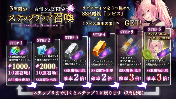 有償ジェム限定ステップアップ召喚を開催! SSRラピスを確定入手可能