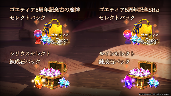 ■ゴエティア5周年記念古の魔神セレクトパック(10,000円、1人1個まで)