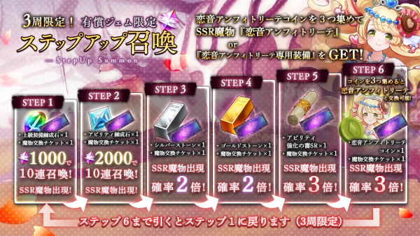 有償ジェム限定ステップアップ召喚を開催! SSR恋音アンフィトリーテを確定入手可能