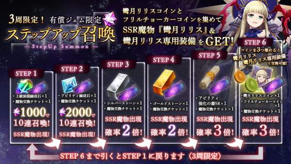 3周限定の有償ジェム限定ステップアップ召喚を開催いたします。