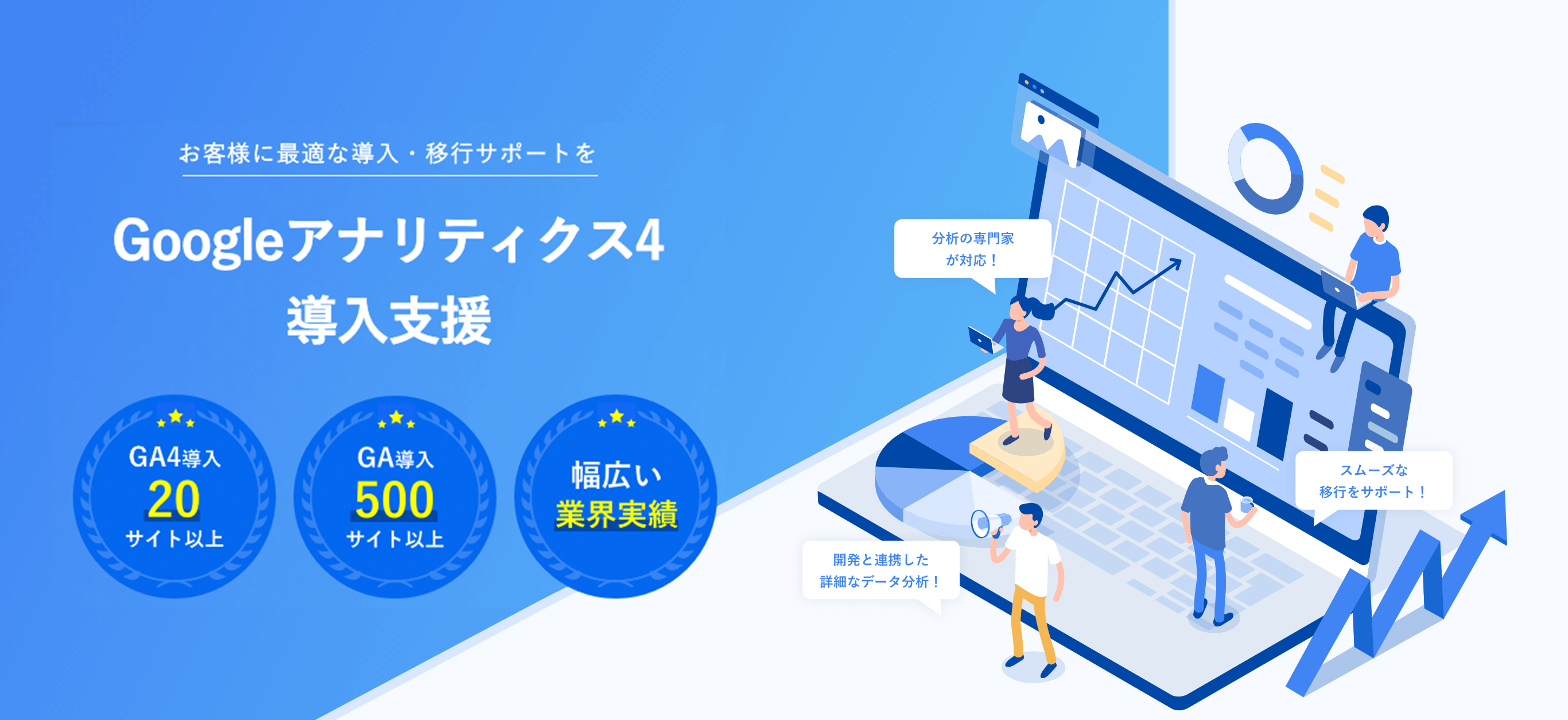 順児)は、Googleアナリティクス4(以下、GA4)の導入・移行支援のサービスページをリリースしました。